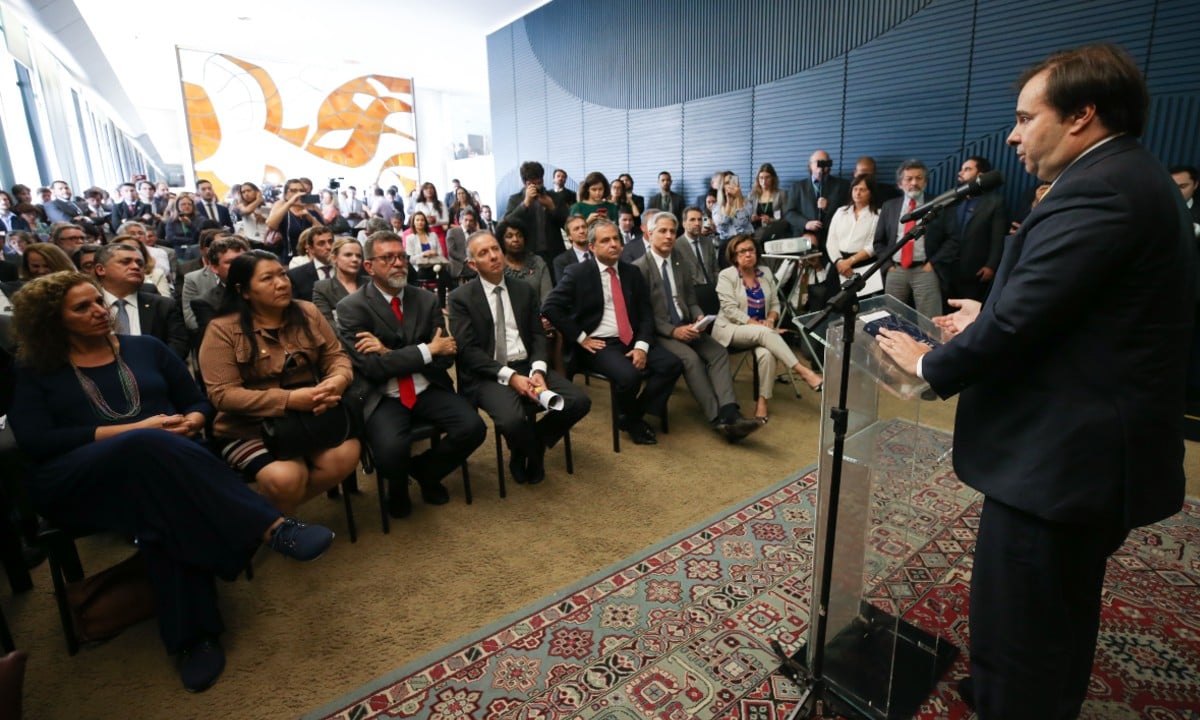 - Na véspera da votação, Maia promoveu um jantar para parlamentares da base governista (Zeca Ribeiro/Ag.Câmara)